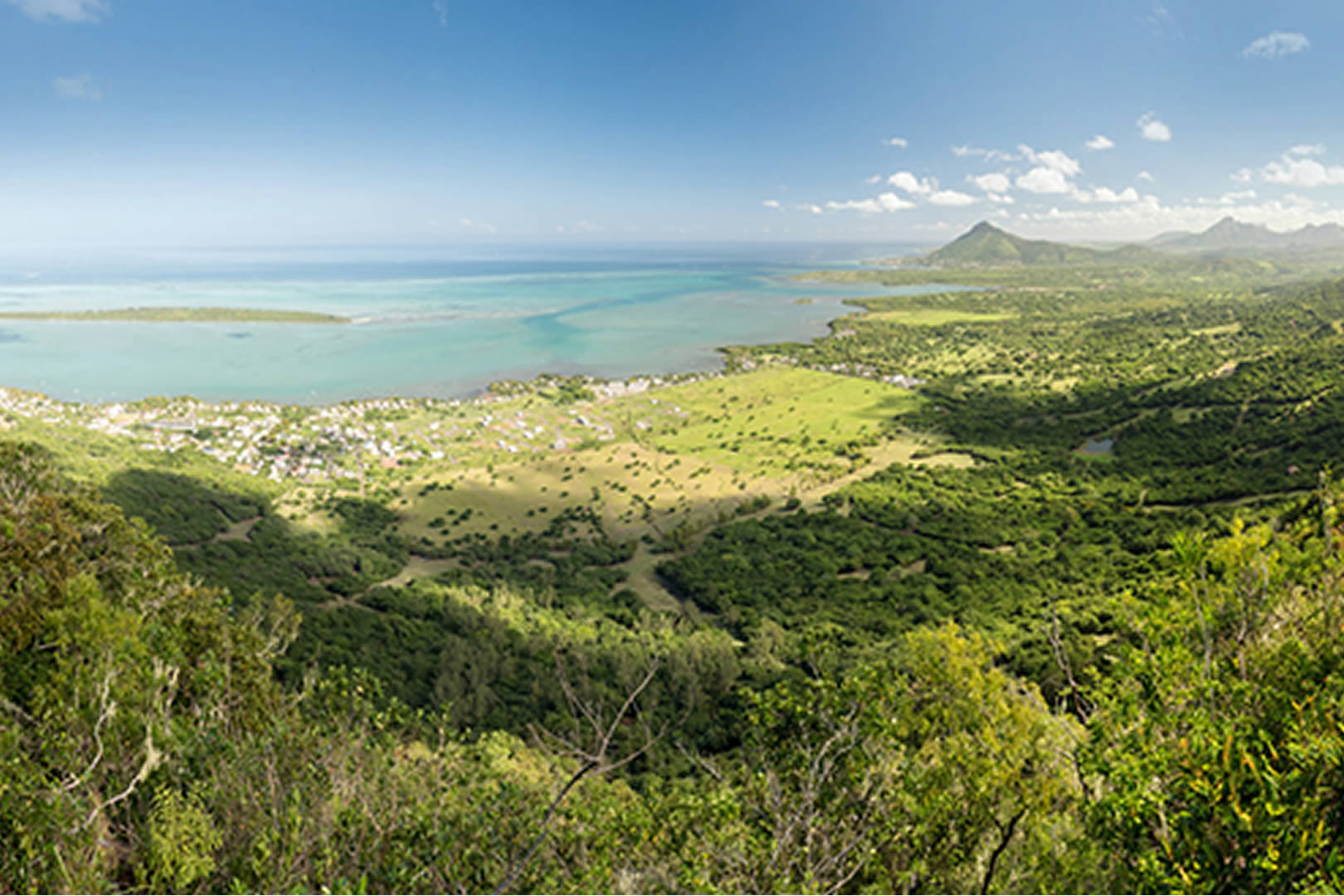 En une vingtaine de minutes, nous arrivons à destination. Le souffle coupé, nous courons pour admirer de plus près la vue imprenable sur le lagon avec l’Ile aux Bénitiers en toile de fond. Au loin, nous apercevons le Corps de Garde, la montagne des Trois Mamelles et le Piton de la Petite Rivière-Noire, la plus haute des montagnes du pays ou encore la chaîne de montagnes de Moka.