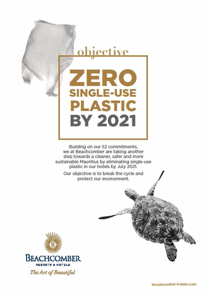 D’après le World Wildlife Foundation, environ 100 millions de tonnes de plastique contribuent aux pollutions terrestre et marin.  Effectivement, à l’île Maurice, 14 % des déchets municipaux, soit 76 000 tonnes, est composé de plastique. Grâce à ce projet du Zéro plastique, le Beachcomber veut sensibiliser ses clients, fournisseurs et artisans sur l’ampleur de la pollution du plastique. Le Beachcomber a comme but de devenir le premier groupe hôtelier Zéro Plastique à usage unique à Maurice.
